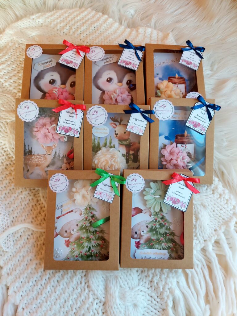 Tule avastama käsitööstuudio erilise hoole ja armastusega valminud kingitusi! Meie jõulu- ja aastavahetuse valikust leiad nii maitsekad maiustused, kaunid kaardid kui ka personaalsed kingiideed.