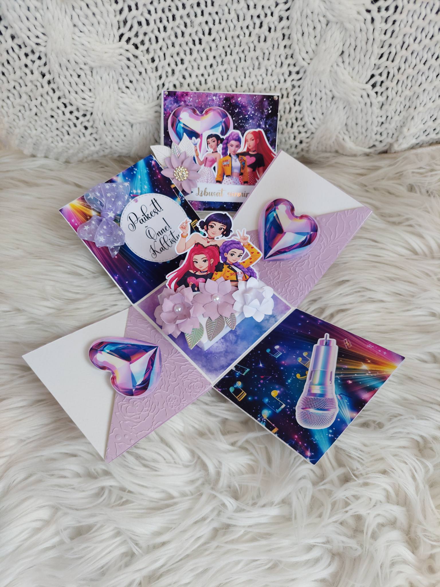 Huntrix-teemaline karp-kaart on vahva ja pilkupüüdev üllatus, mis rõõmustab sünnipäevalast. Kaart avaneb nagu karp ning selle nutikas ülesehitus pakub ruumi nii luulele kui ka isiklikule õnnitlusele.