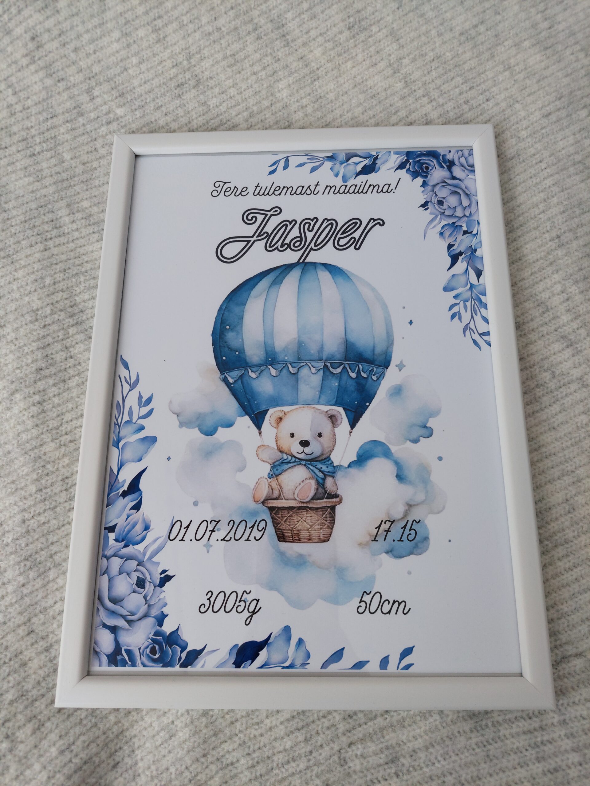 Kaunis ja personaalne sünniandmetega poster raamis on eriline mälestus lapse sünnist ning armas sisustuselement lastetoas. Posterile on kujundatud lapse kõige olulisemad sünniandmed – nimi, sünnikuupäev, kellaaeg, pikkus ja kaal – mis jäävad meenutama seda imelist päeva.