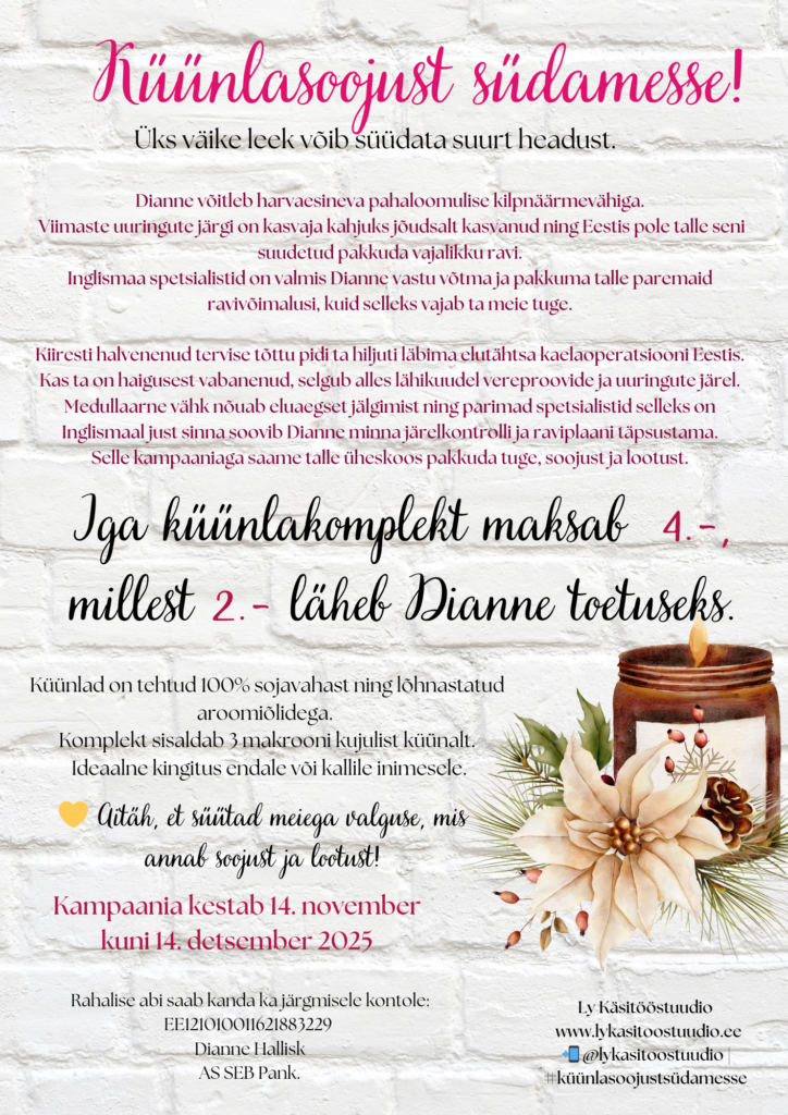 Lõin heategevuskampaania „Küünlasoojust südamesse“, et koguda vahendeid Dianne raviteekonna toetuseks.