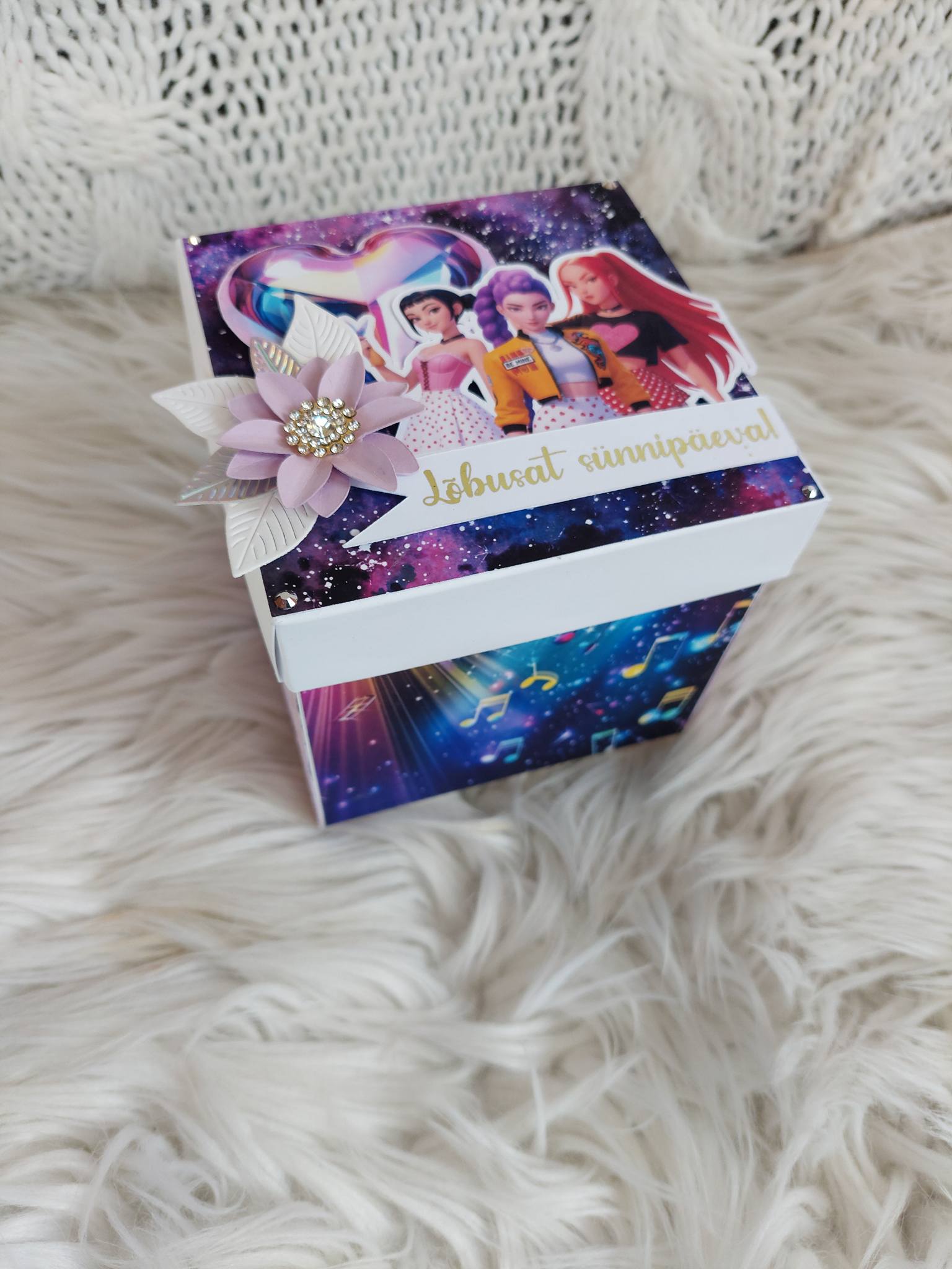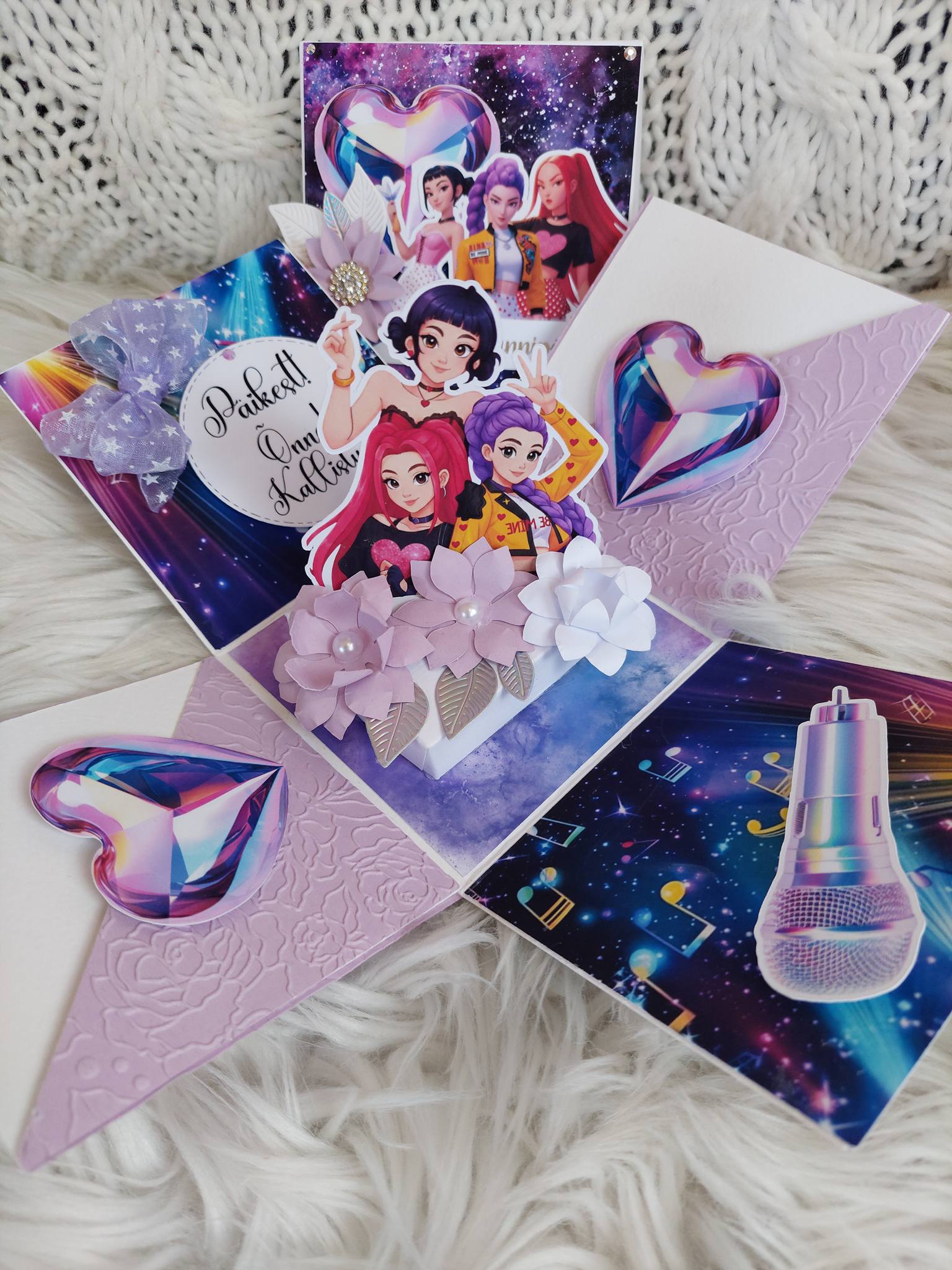 Huntrix-teemaline karp-kaart on vahva ja pilkupüüdev üllatus, mis rõõmustab sünnipäevalast. Kaart avaneb nagu karp ning selle nutikas ülesehitus pakub ruumi nii luulele kui ka isiklikule õnnitlusele.