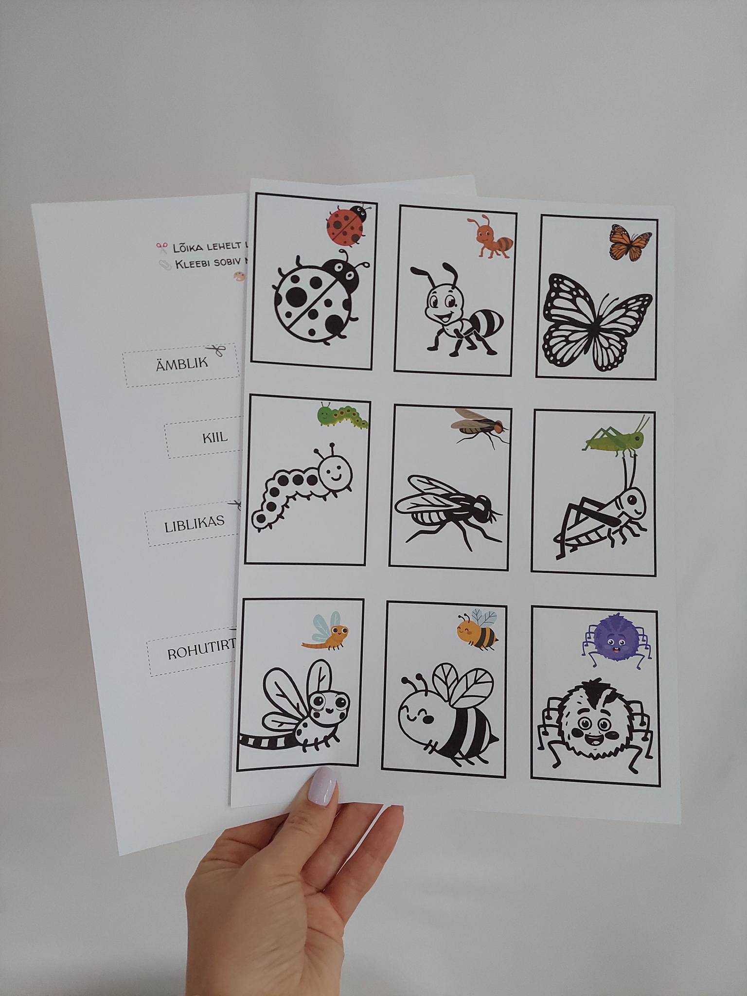 Tööleht ” Värvi, lõika ja kleebi” putukad.
